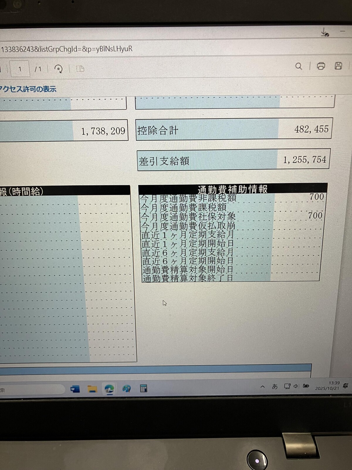 今月だけ総支給額狂ってるけど控除割合見てわかる通りそんなに元の給料高くないぞ