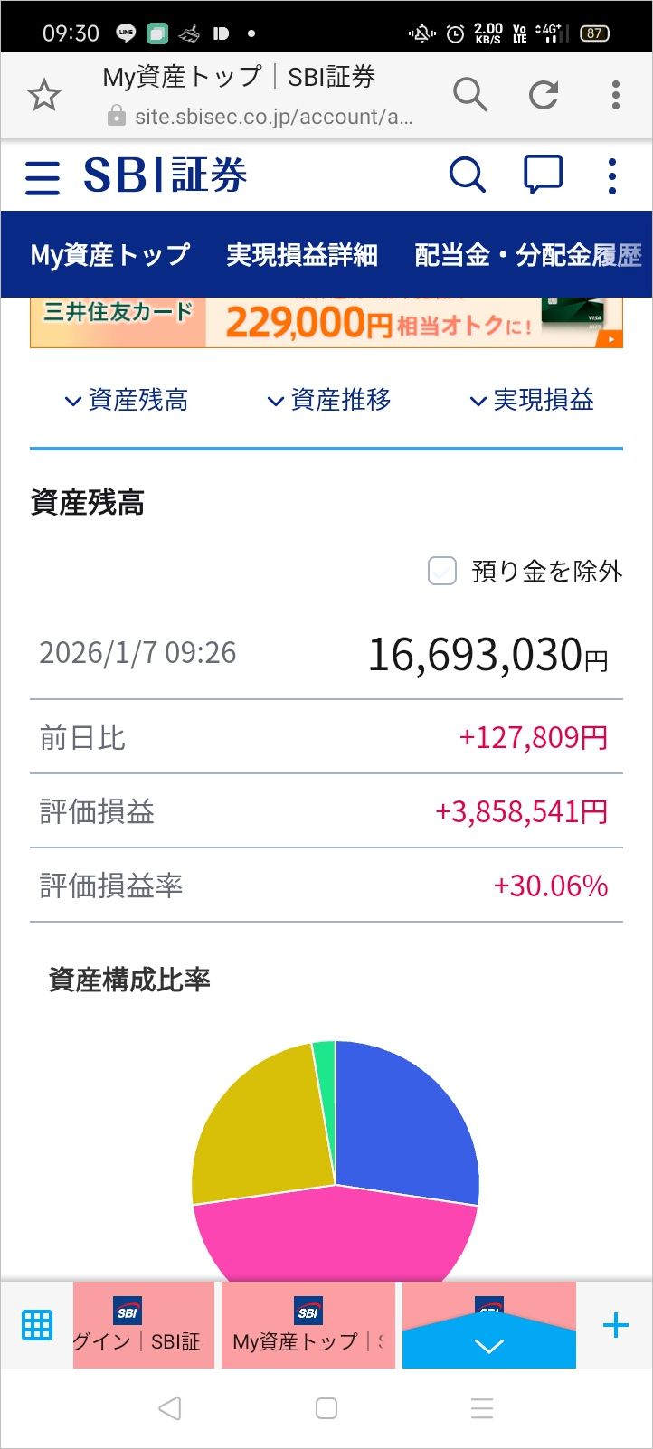 含み益7900万ワイ高みの見物