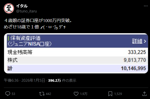 NISAだけで億り人になるやつ10年くらいしたら続々現れるで
